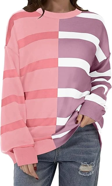Unique Design: Cute striped and color block design, crew neck, dropped shoulder, high low hem, side split, covers the hips length, casual and loose fit.
